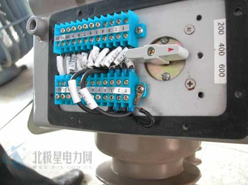 打开断路器的底板,A相互感器的四根导线接于端子排上。其中三根导线在距离端子排200mm处有接头,接头用黑胶布包裹,外观看有裸漏现象,断路器壳体有直径4厘米的椭圆击穿弧光接地痕迹。其中黄色导线对地有多根烧断致使铜线烧化呈铜珠焊在壳体上,这是电流互感器烧毁的主要原因。
