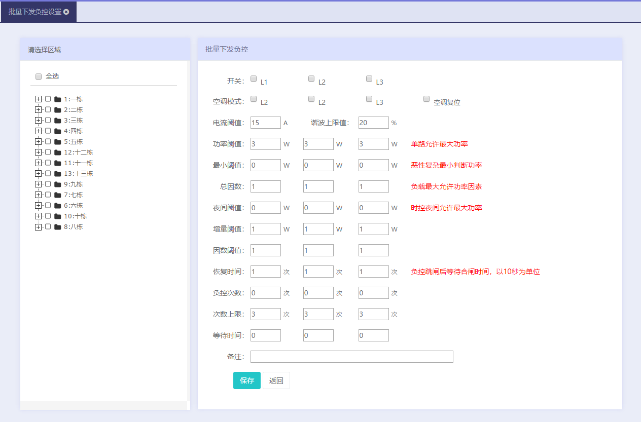 批量操作:系统支持对宿舍进行批量设置,批量初始化、批量下发基础电量、批量设置负控、批量设置时控等,方便学校进行统一管理。